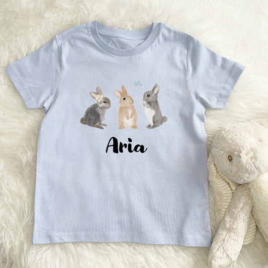 Kids Personalised Watercolour Bunnies T Shirt