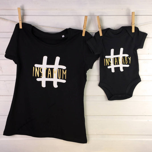 Gold Foiled Instamum And Baby Mother And Child T Shirt Set