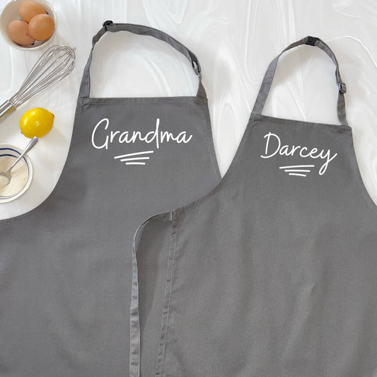 Personalised Grandma And Child Ballpoint Apron Set