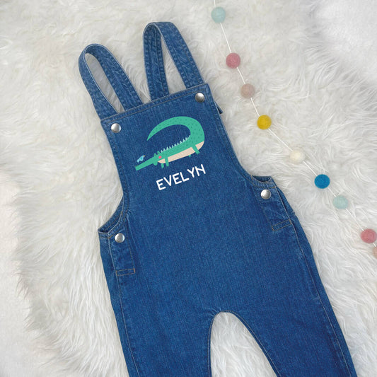 Crocodile Personalised Baby/Kids Denim Dungarees