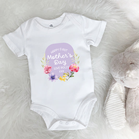 Personalised Happy First Mother's Day Floral Babygrow
