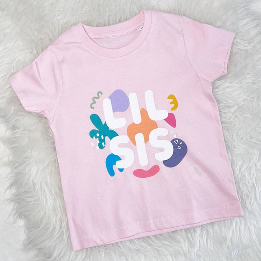 Bright Abstract Big Sis Lil Sis Pink T Shirt Set
