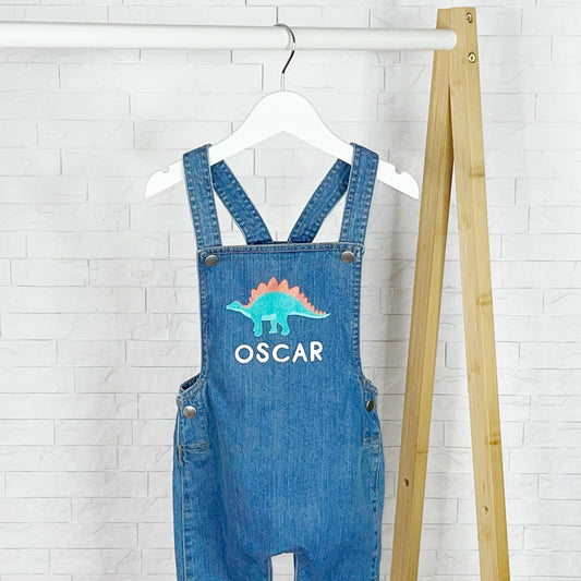 Dinosaur Personalised Baby/Kids Denim Dungarees