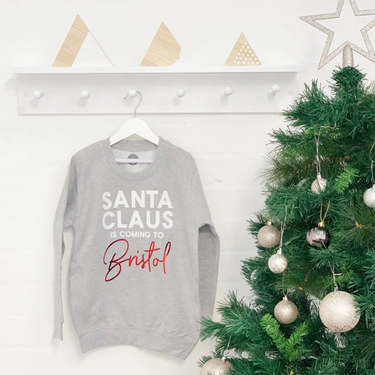Santa Claus Is Coming To… Kids Christmas Jumper
