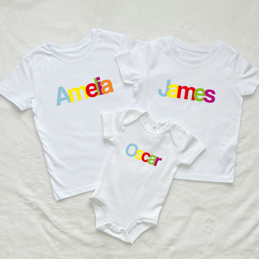 Personalised Multicoloured Set Of Three Kids T Shirts