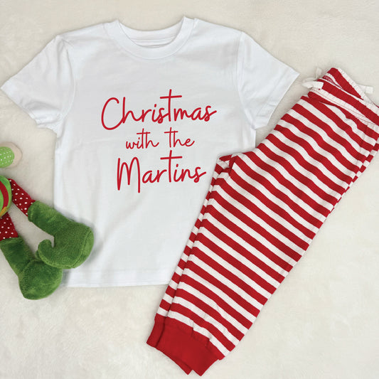 Kid's Happy Holidays Santa Personalised Matching Christmas Pyjamas