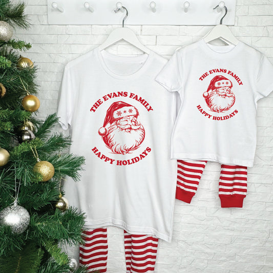 Adult Happy Holidays Santa Personalised Matching Christmas Pyjamas