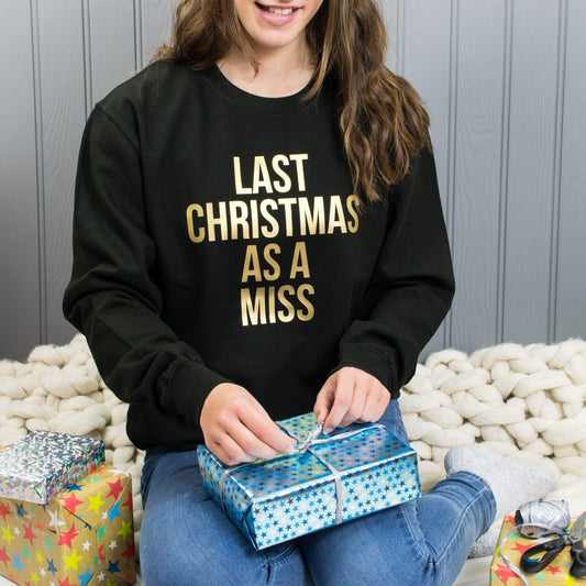 Last Christmas As A Miss Jumper With Bold Gold Print