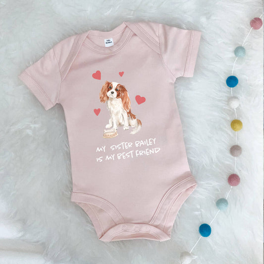 King Charles Cavalier Dog Sibling Personalised Babygrow