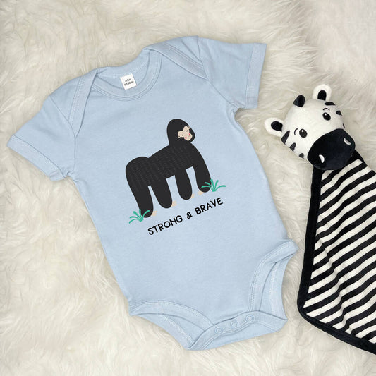 Strong And Brave Gorilla Personalised Jungle Babygrow