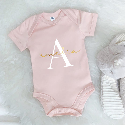 Babygrow Personalised With Name And Gold Initial