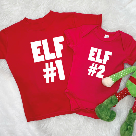 Two Little Elves Matching Kids T Shirt And Babygrow