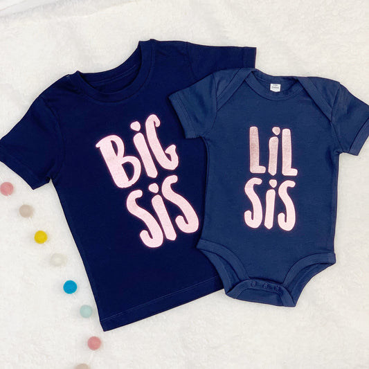 Big Sis Lil Sis Matching T Shirt Set Rose Gold