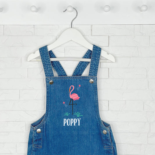 Flamingo Personalised Kids/Baby Denim Dungarees