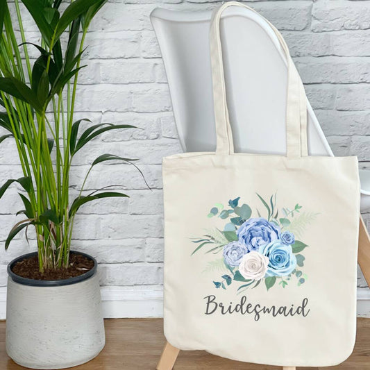 Bride And Bridal Party Blue Floral Wedding Tote Bag