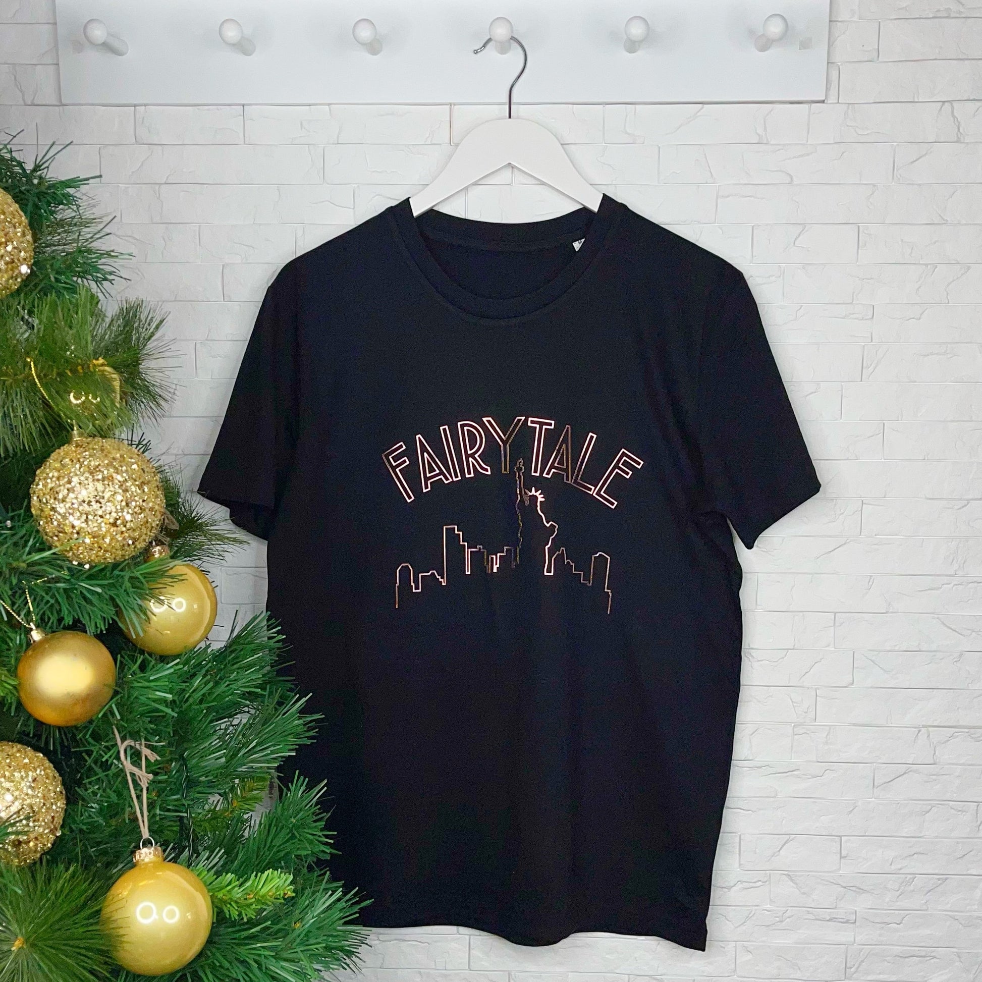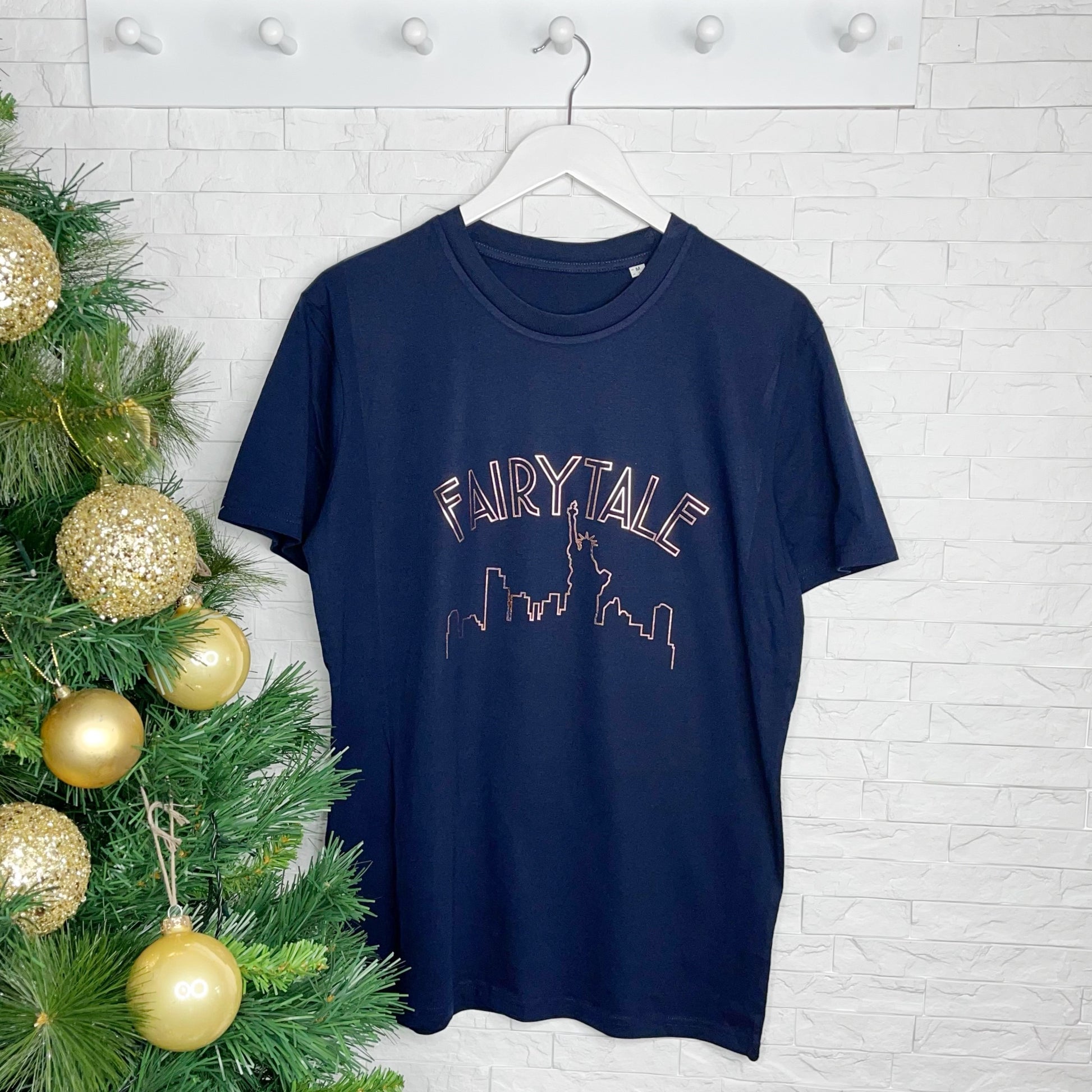 We've created a new version of our Fairytale gold design with this updated rose gold more minimal version. The skyline is taken from actual holiday photos from a recent trip to New York. This Christmas t shirt is a great outfit for the season. If you love a bit of the Pogues at Christmas, this is the Christmas T Shirt for you. This is also available as a sweatshirt if you'd prefer, please see other items in our store.