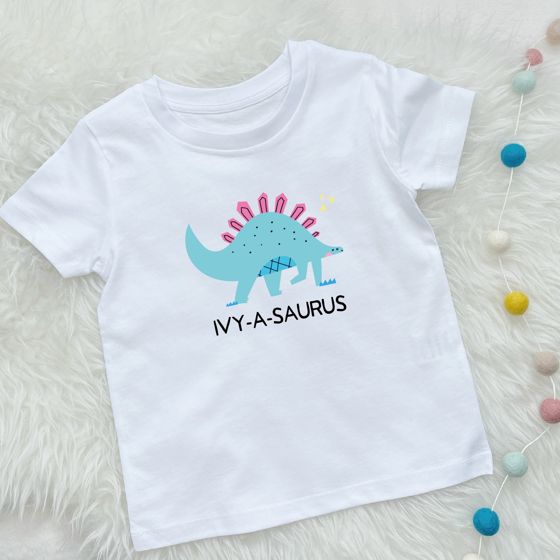 Girls Personalised Dinosaur T Shirt Stegosaurus