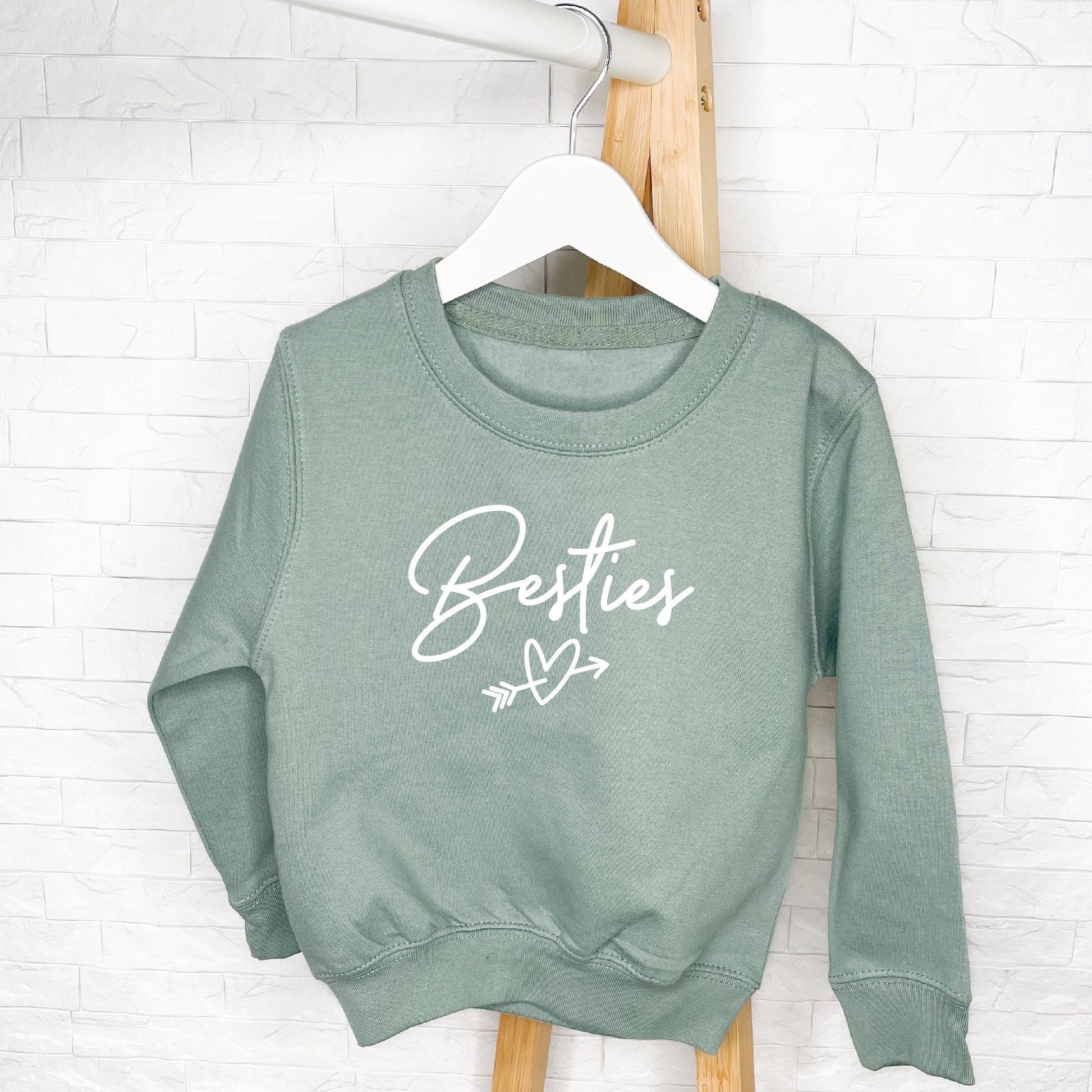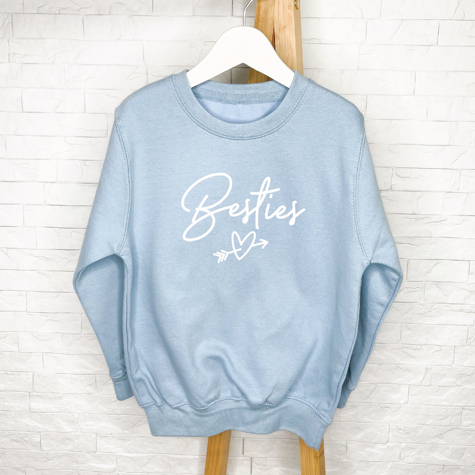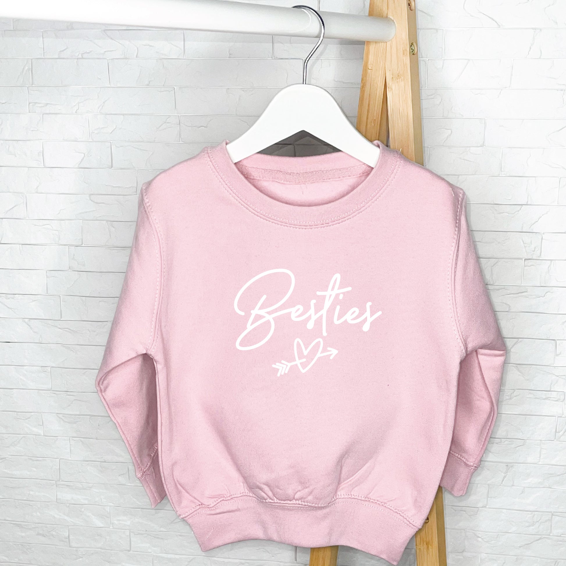 This super snuggly Besties sweatshirt set is a really cute girly design complete with a heart, perfect for any sisters, cousins or little besties! Choose from a range of colours that any little besties will love.