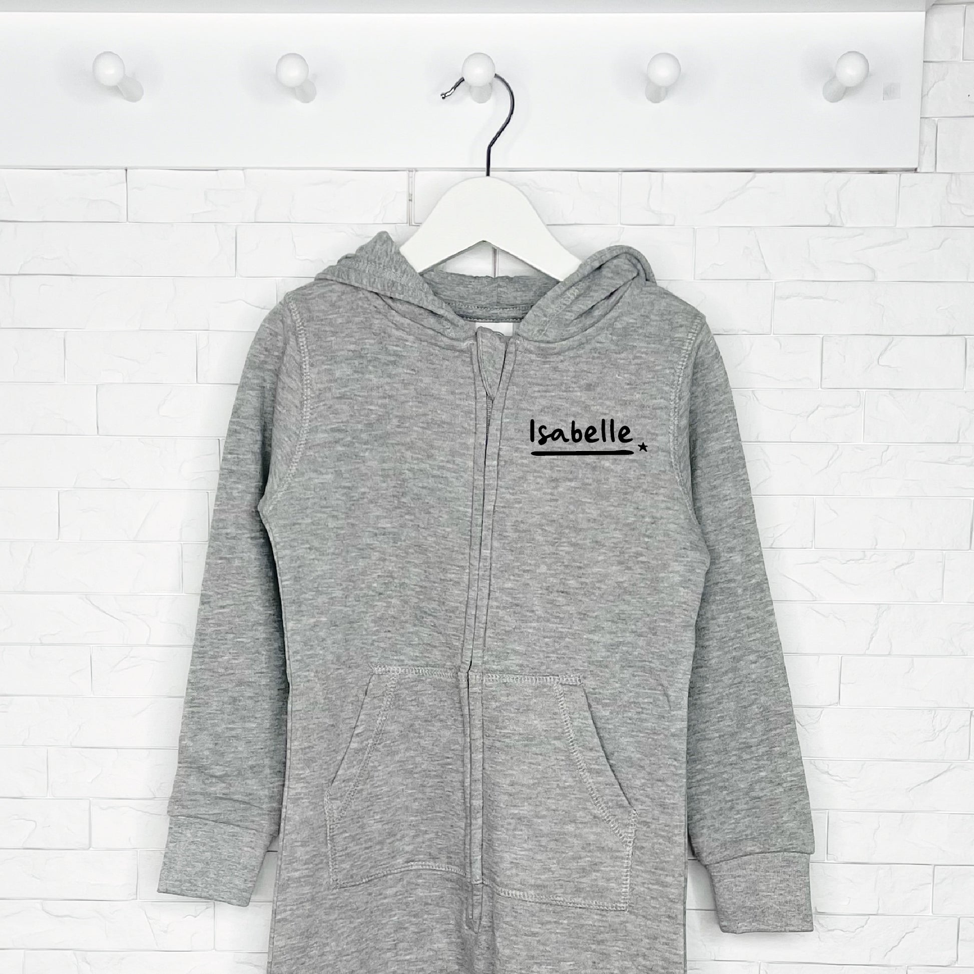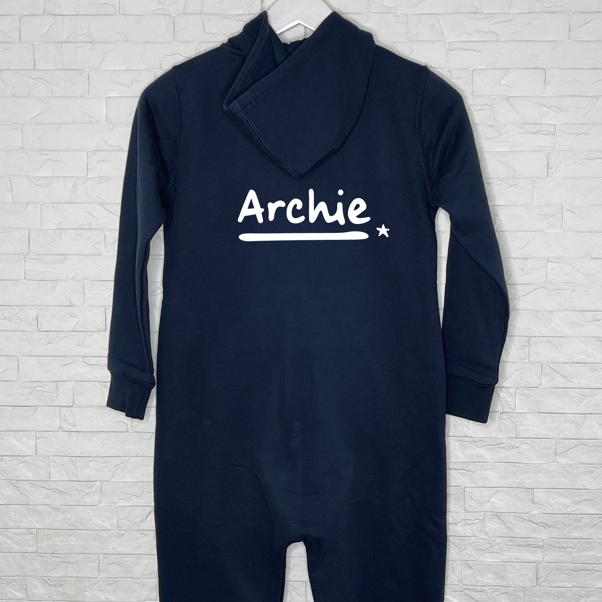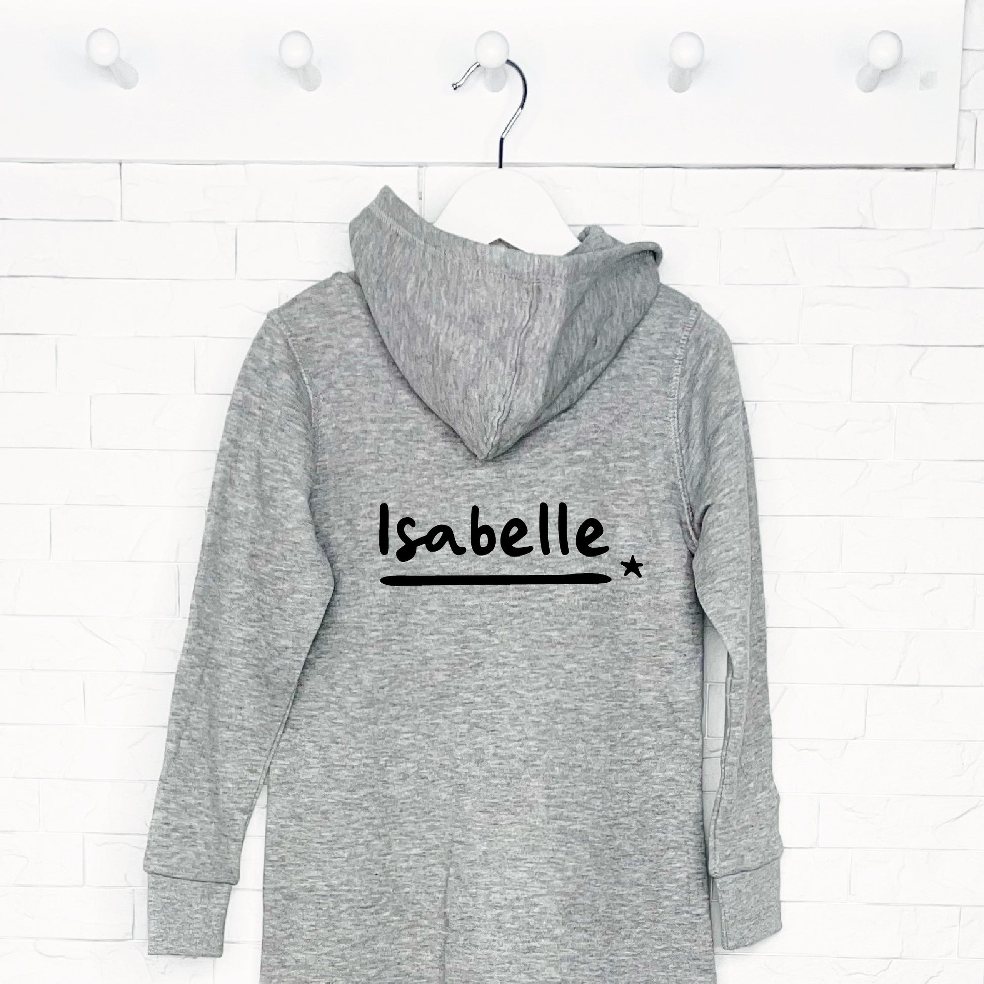 Any Kid will love this super snuggly personalised Kids Onesie with their name in a modern style and a little star on the front and back. A brilliant Christmas or Birthday gift for a boy or girl you don't know what to buy for. They are sure to live and lounge in this cute kids onesie.