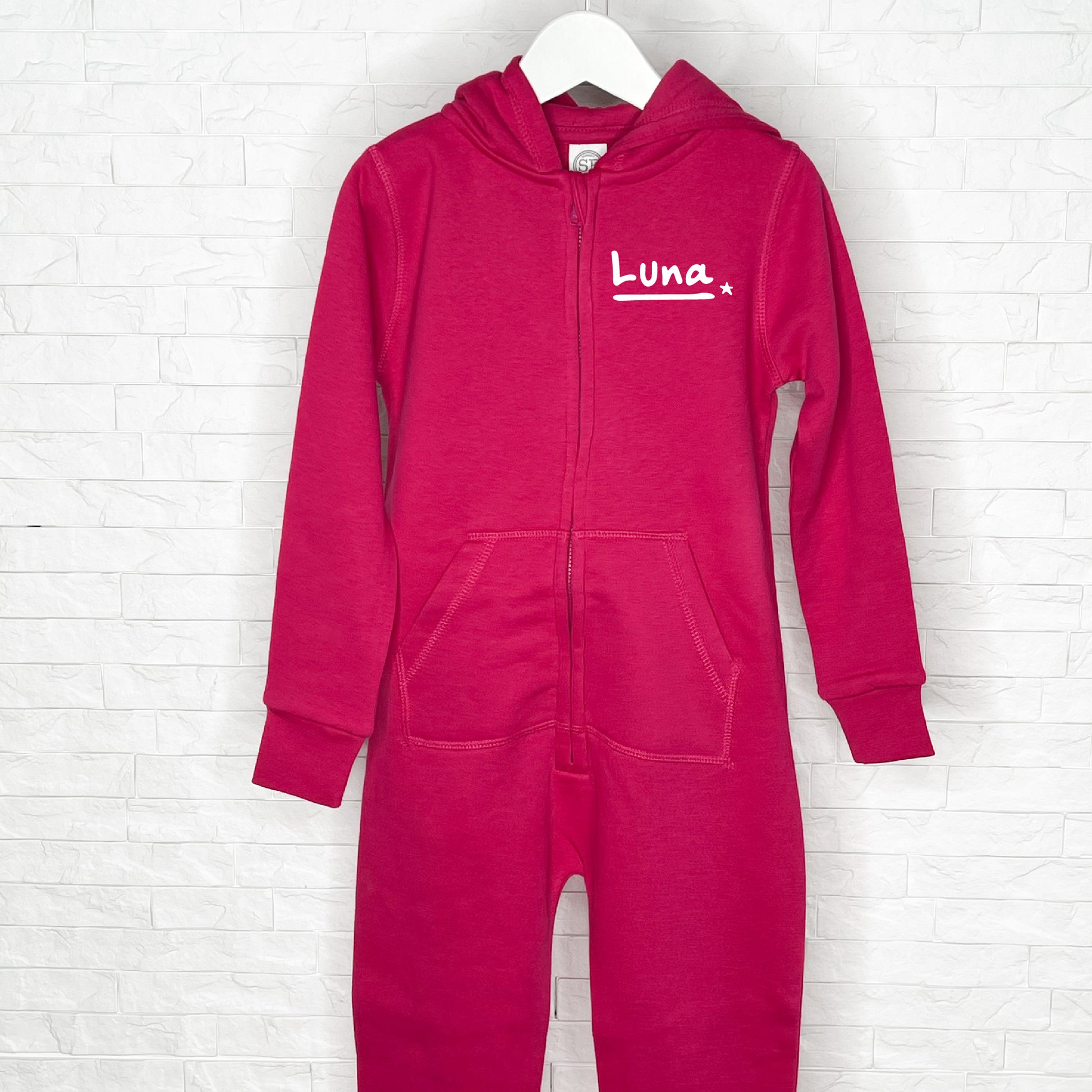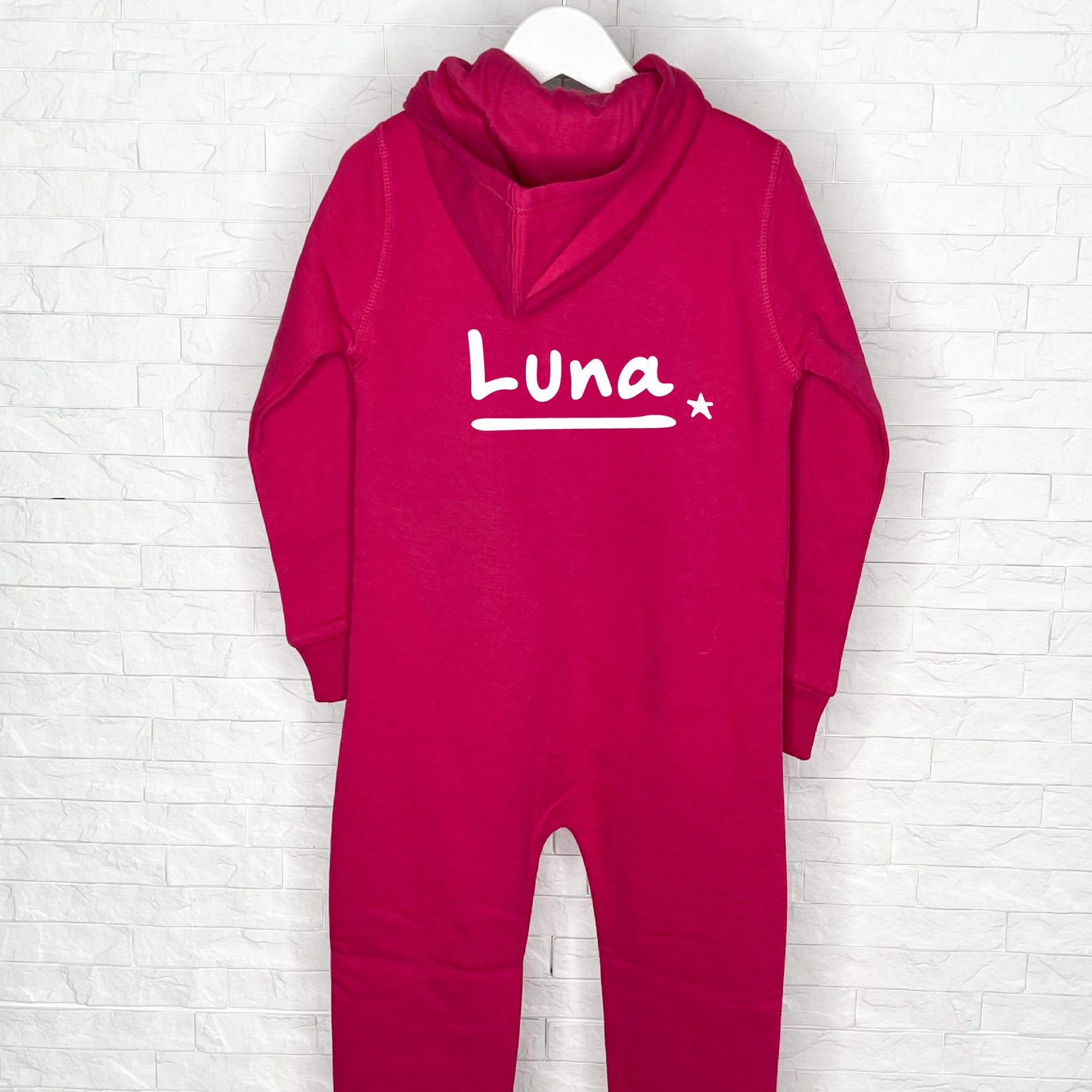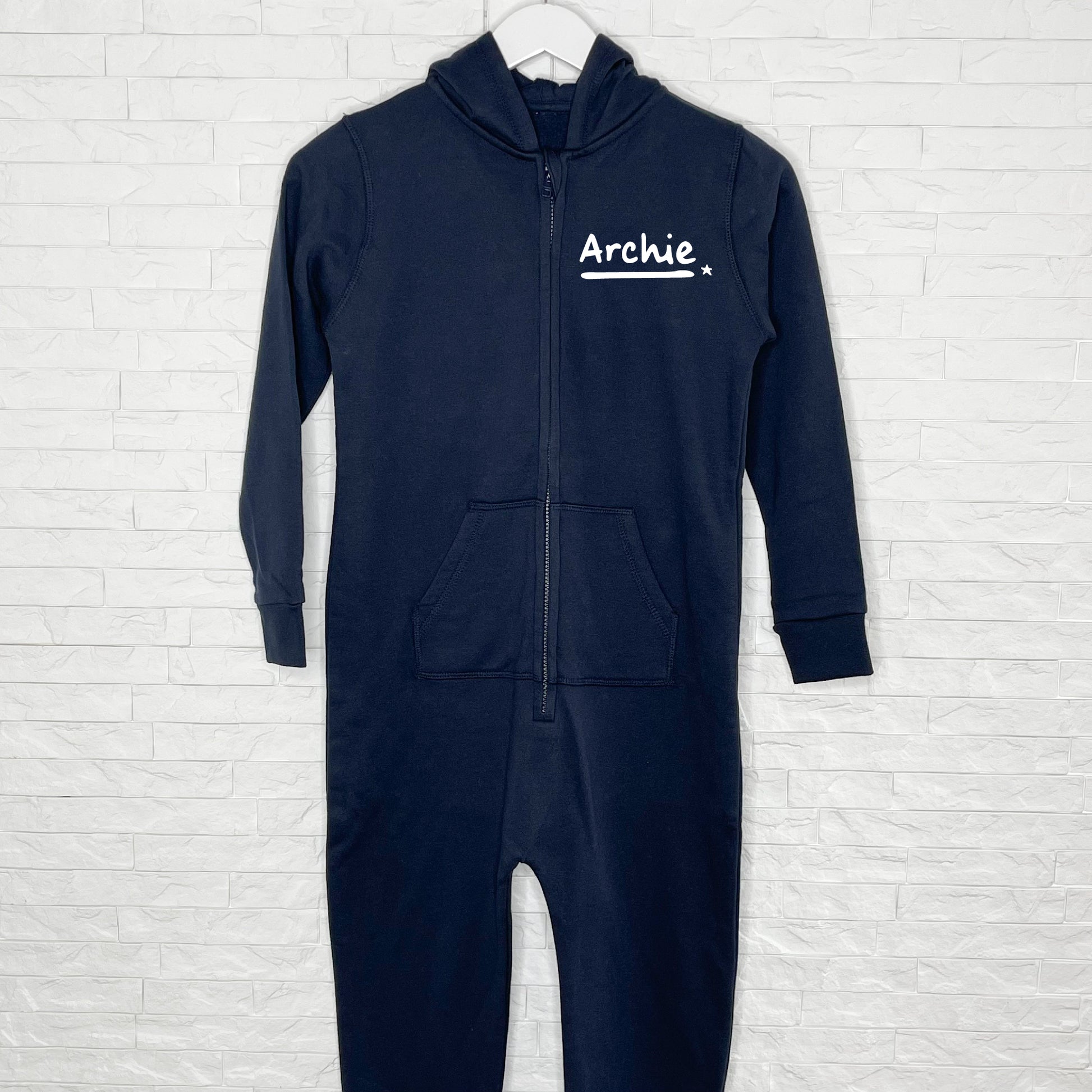Any Kid will love this super snuggly personalised Kids Onesie with their name in a modern style and a little star on the front and back. A brilliant Christmas or Birthday gift for a boy or girl you don't know what to buy for. They are sure to live and lounge in this cute kids onesie.