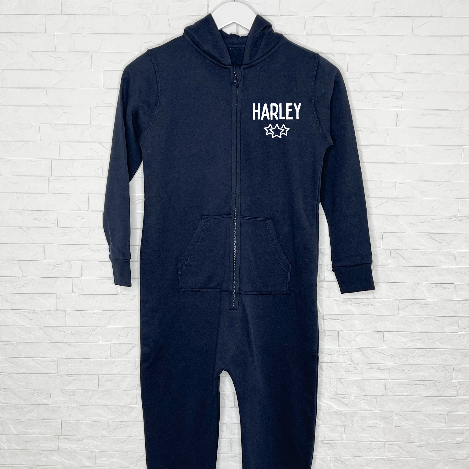Any Kid will love this super snuggly personalised Kids Onesie with their name with stars on the front. A brilliant Christmas or Birthday gift for a boy or girl you don't know what to buy for. They are sure to live and lounge in this cute kids onesie.