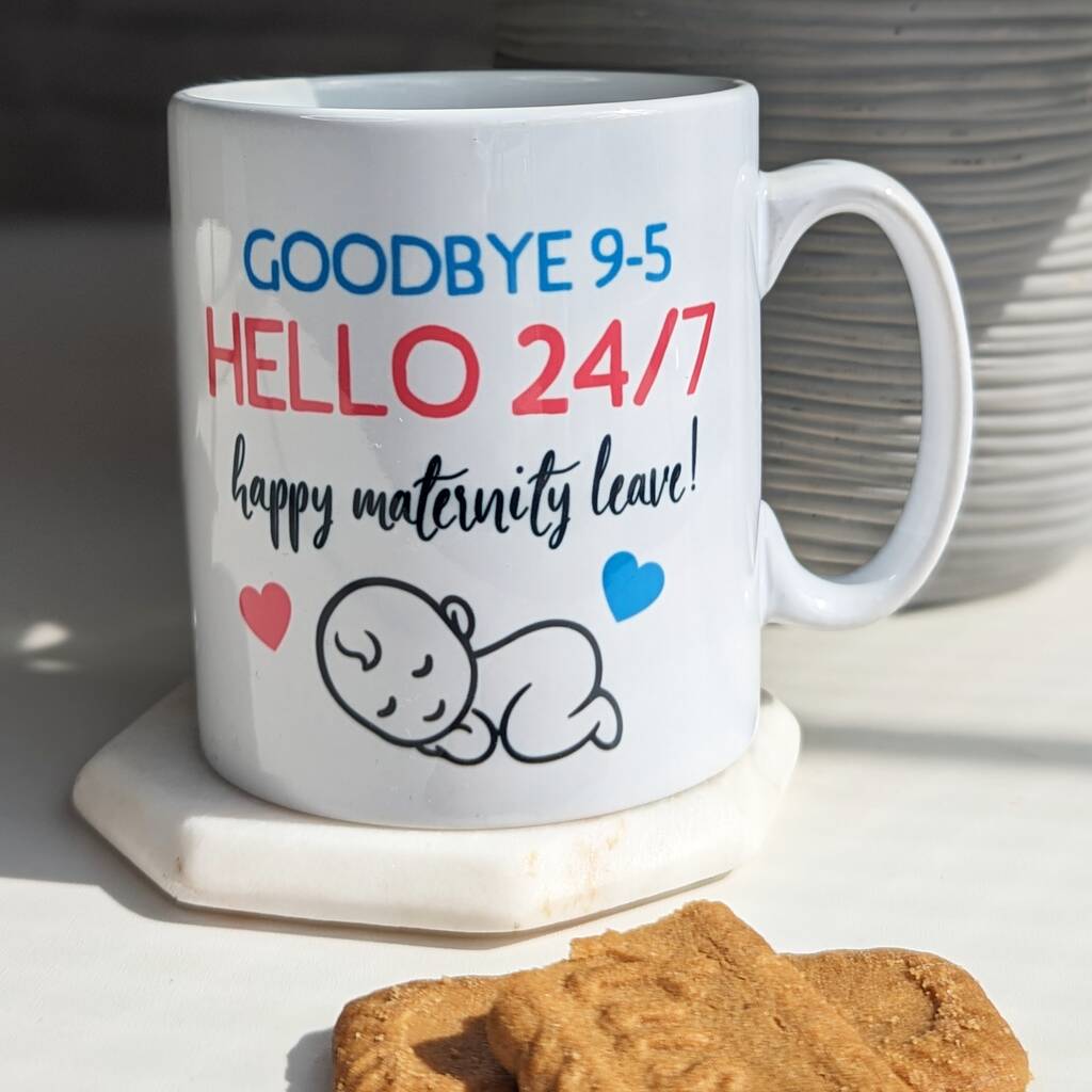Goodbye 9-5, Hello 24-7, a cute mug to wish a colleague a Happy Maternity Leave.