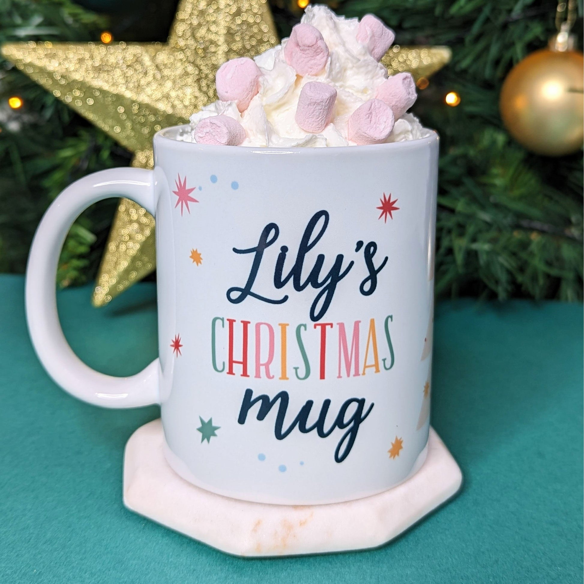We think this is a lovely personalised Christmas Mug for Kids and Adults alike. A great Secret Santa Gift or a great addition to a Christmas Eve Box. Extra special as this Christmas Mug is personalised with their name. A modern and Bright Design.