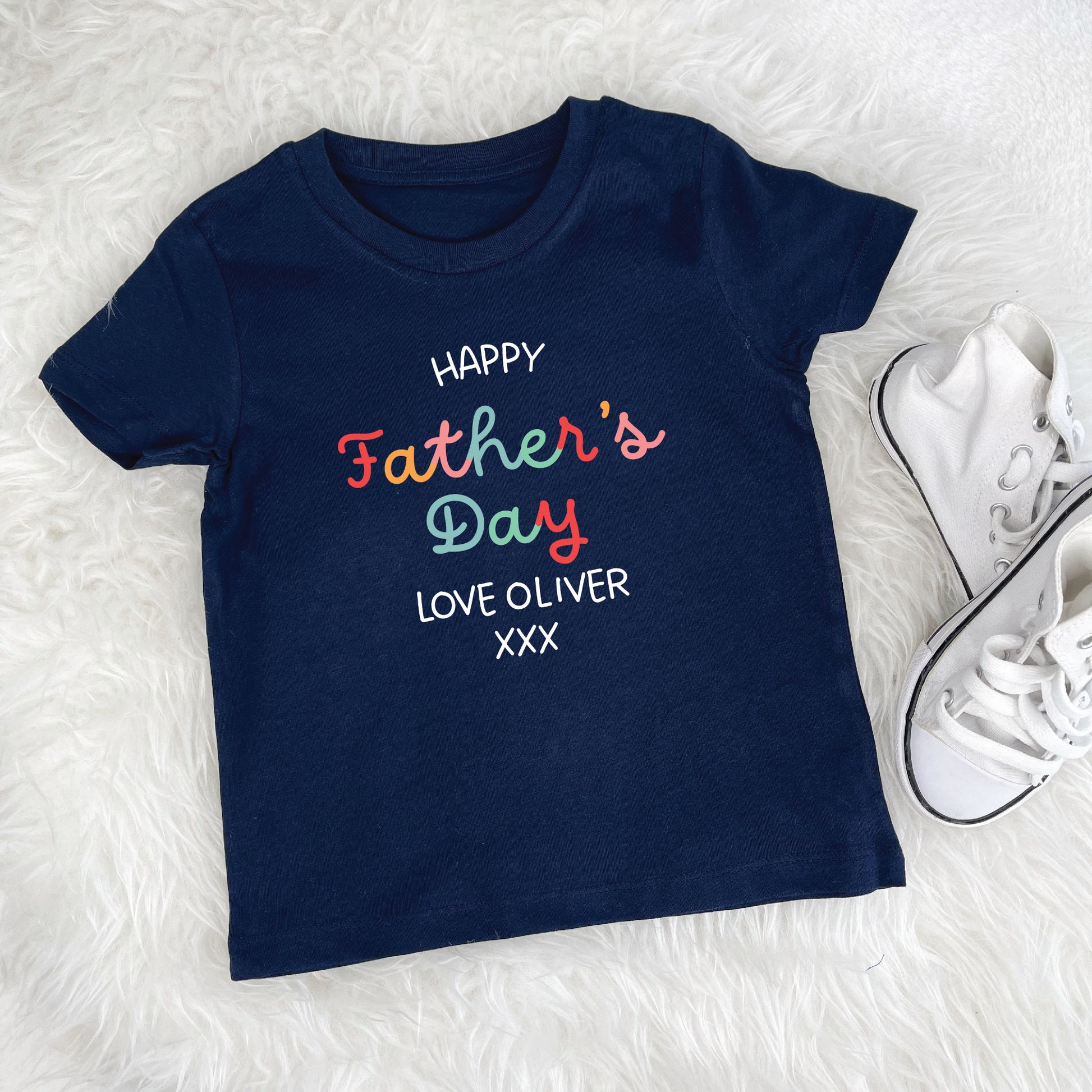 We love the bright and modern Father's Day design perfect for boys and girls to wear this Father's Day.