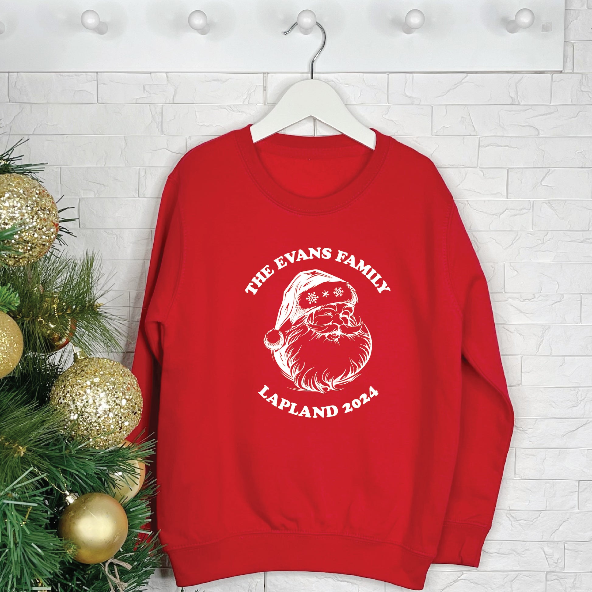 On a festive red sweatshirt, these matching family Christmas Jumpers are personalised with the year and the family surname. Wearing these in Lapland will look great on the pictures and help create lovely family memories.